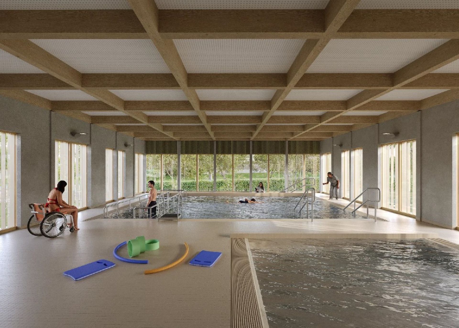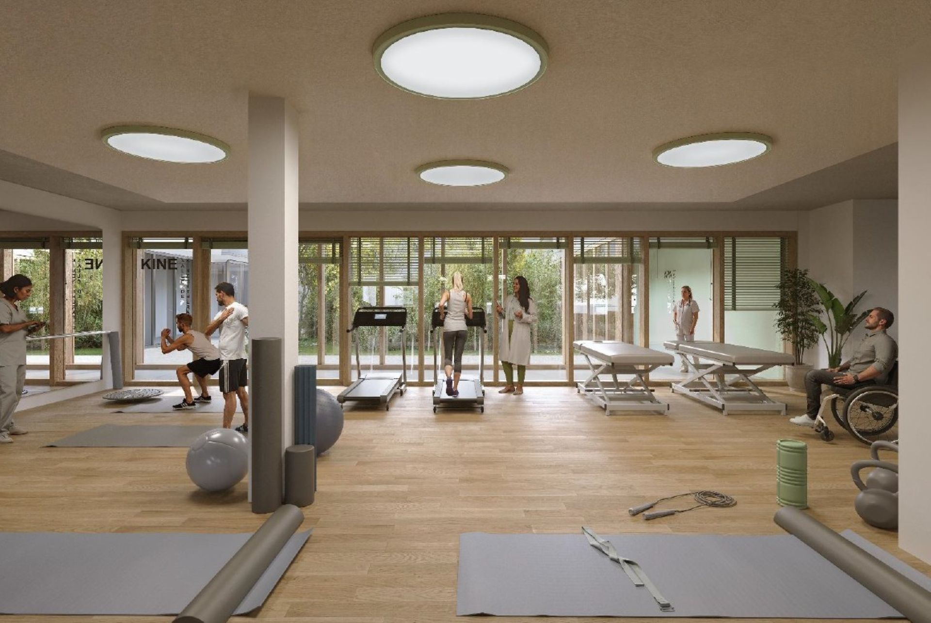 • Le niveau RDC haut accueille le pôle hospitalisation complète et l’espace de balnéothérapie.