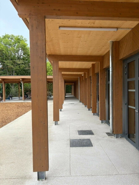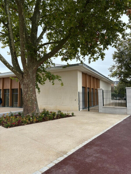 Avec son identité unique mariant la pierre et le bois, cette école dispose d'une "cour oasis", havre de verdure aux vertus pédagogiques et ludiques, pour éduquer les enfants à l'observation du monde vivant et de la biodiversité dans un cadre apaisant et harmonieux.